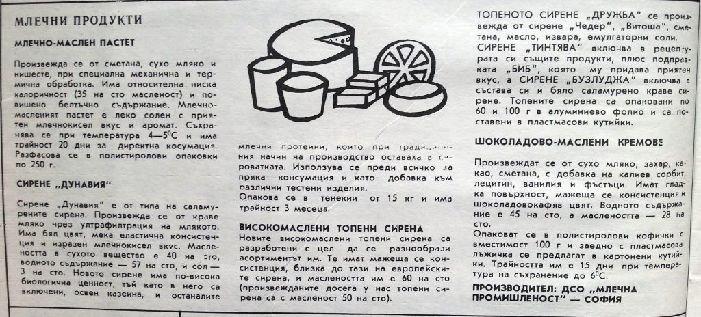 ТОПЕНОТО СИРЕНЕ „ДРУЖБА“ се произвежда от сирене „Чедер“, „Витоша“, сметана, масло, извара, емулгаторни соли. СИРЕНЕ „ТИНТЯВА“ включва в рецептурата си същите продукти, плюс подправката „БИБ“, която му придава приятен вкус, а СИРЕНЕ „БУЗЛУДЖА“ включва в състава си и бяло саламурено краве сирене. Топените сирена са опаковани по 60 и 100 г в алуминиево фолио и са поставени в пластмасови кутийки.