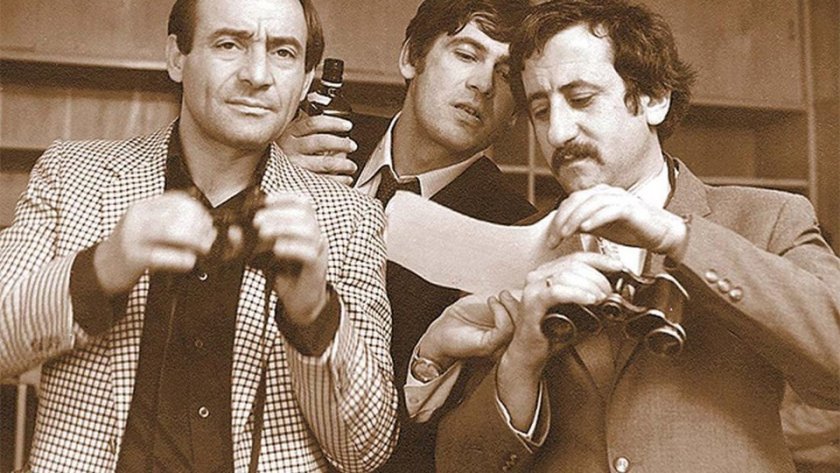 Велко Кънев като Сервитьорът в „Лов на диви патици“, постановка Красимир Спасов, Сатиричен театър, сезон 1977/1978